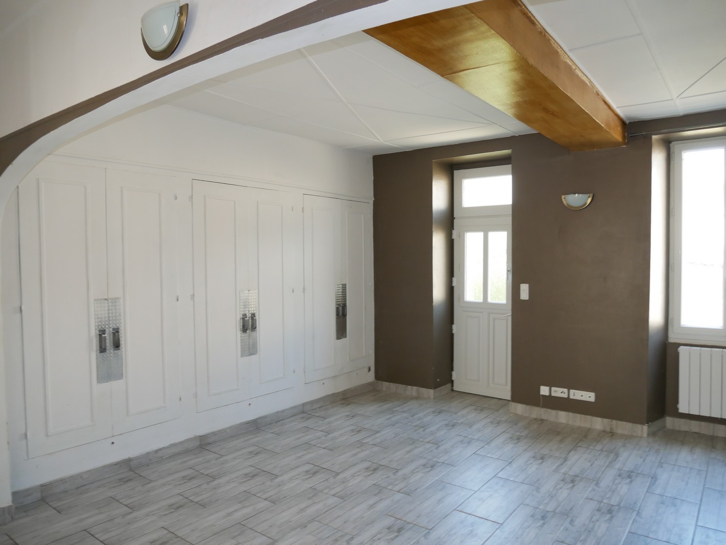 Maison comprenant : Entrée dans salle de séjour 27 m² carrelée avec placards. Cuisine aménagée 10 m² carreléeavec porte donnant sur cour.