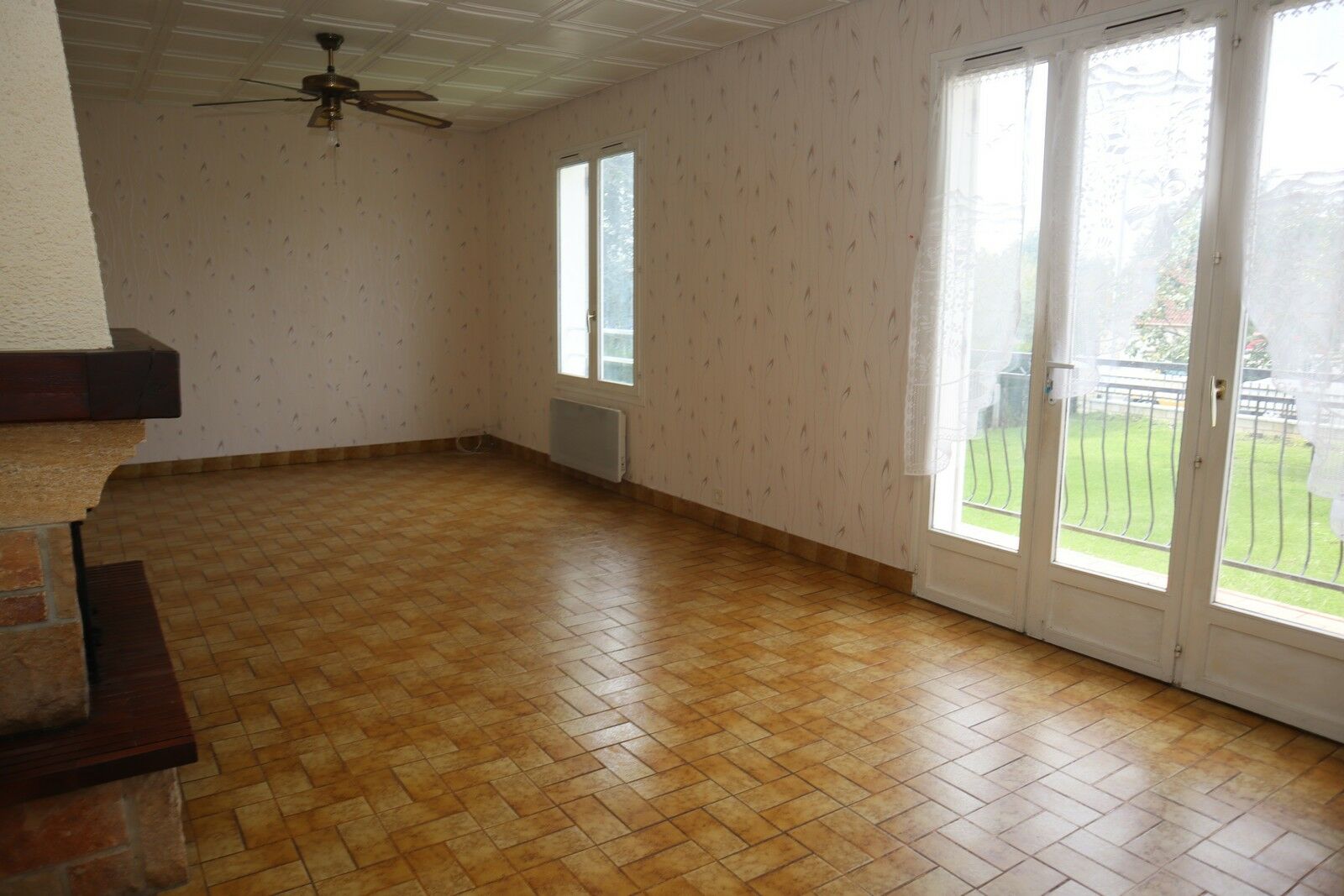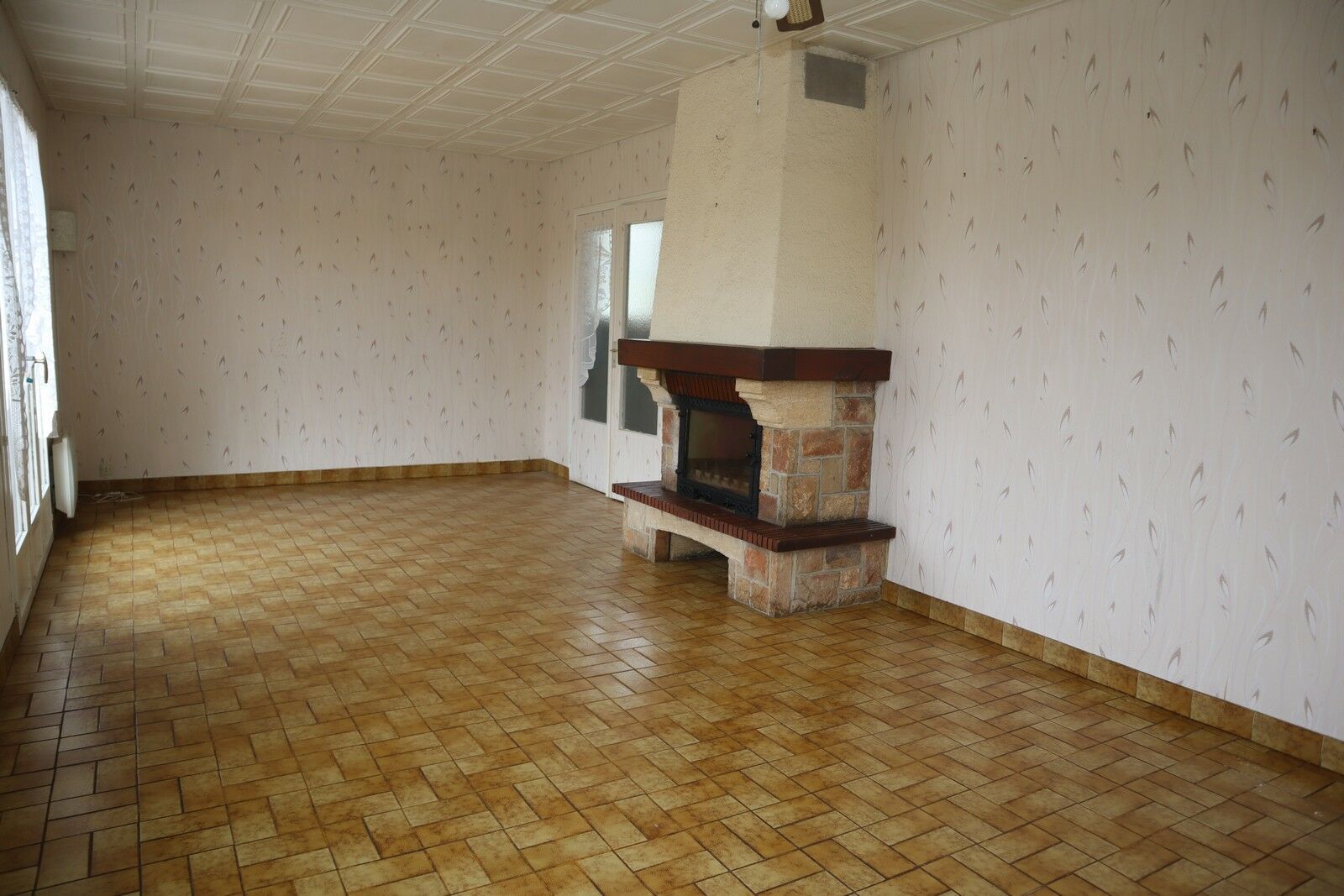 Rez-de-chaussée : Entrée dans salle de séjour 27 m² carrelée avec cheminée + insert. Cuisine équipée 7 m² carrelée. Dégagement 10 m² carrelé avec placard. wc carrelé. Salle d’eau 5 m² carrelée. Chambre 11 m² sol vinyle avec placard. Chambre 9 m² sol vinyle avec placard. Chambre 9 m² sol vinyle.