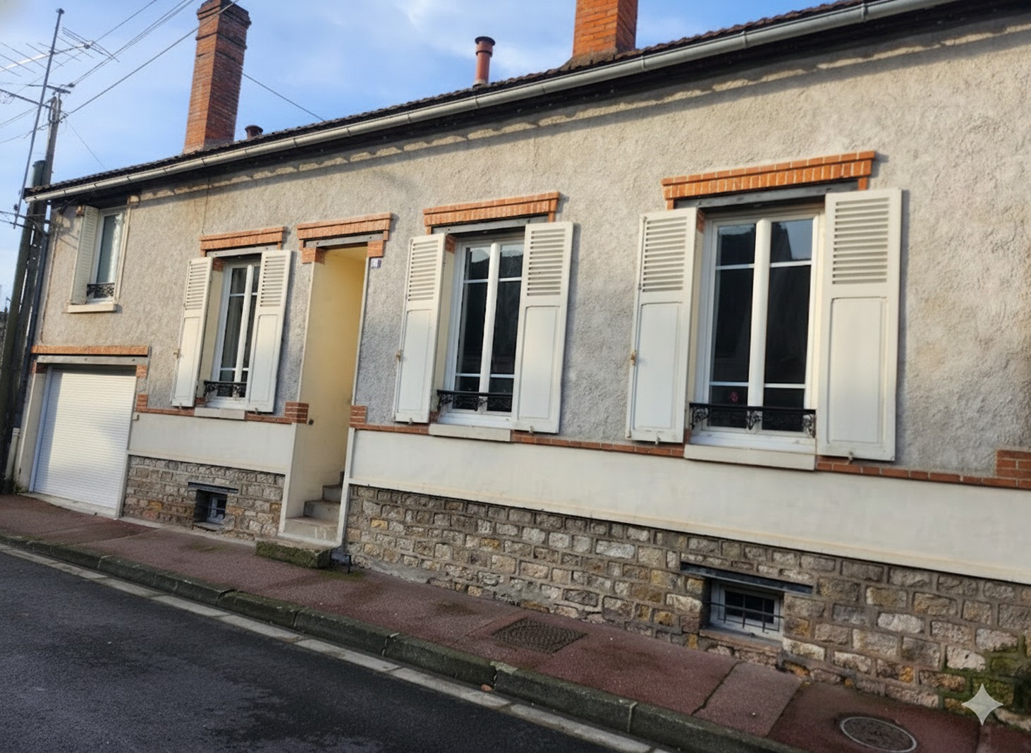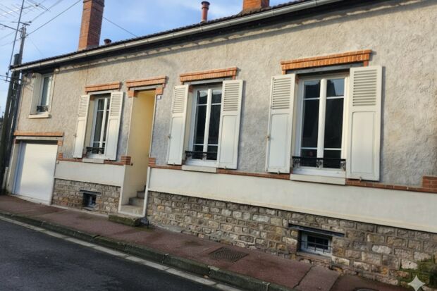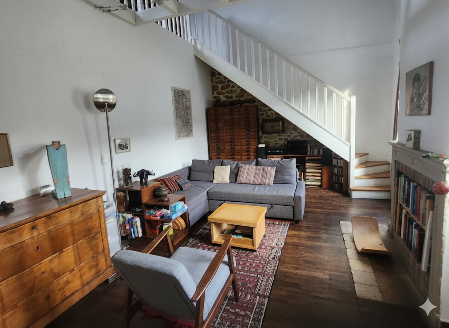 Maison de ville comprenant : Salle de séjour 40 m² parquetée avec cheminée, poêle à granulés et escalier apparent. Cuisine ouverte équipée 18 m² carrelée donnant sur véranda 18 m² carrelée. Chambre 14 m² parquetée avec cheminée et salle de bains privative 9 m² carrelée avec wc. Buanderie 8 m² carrelée.