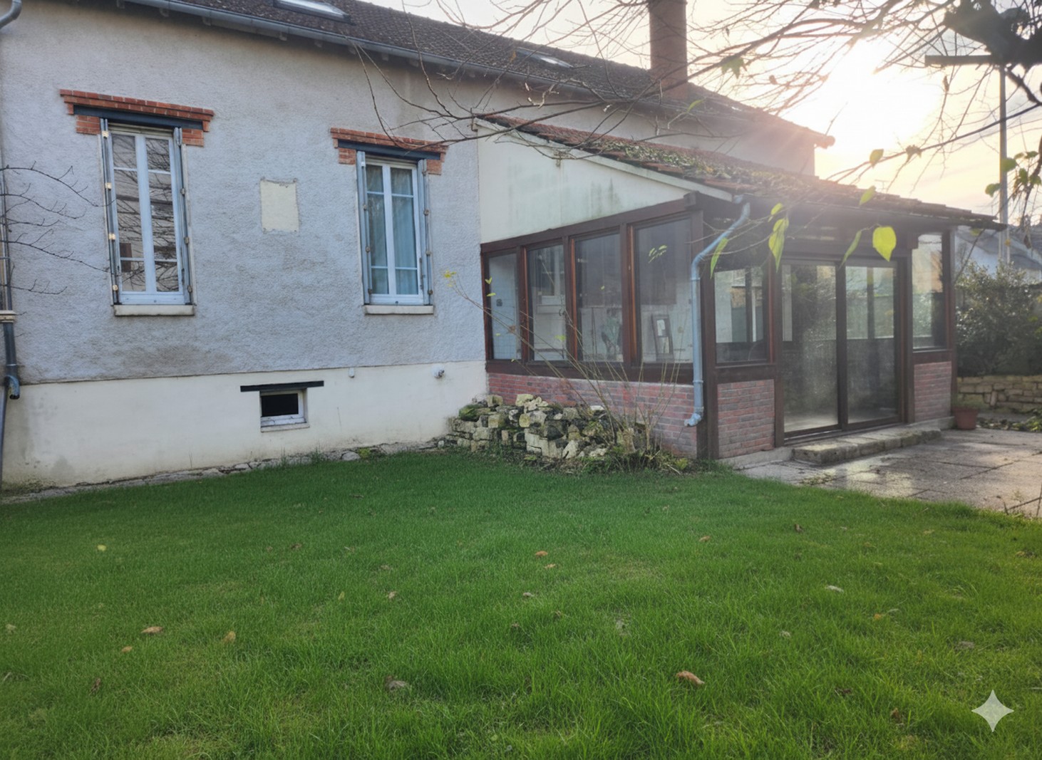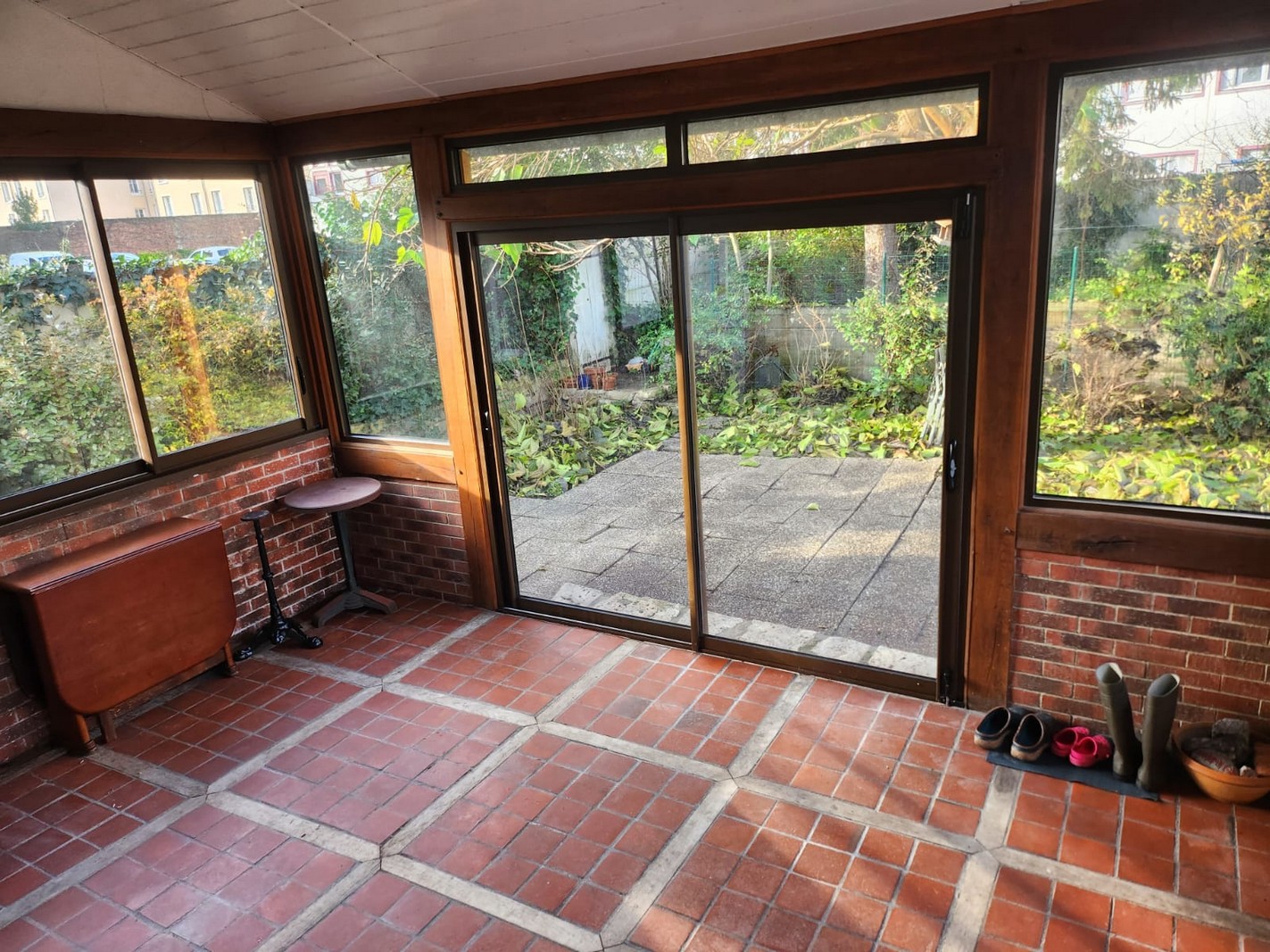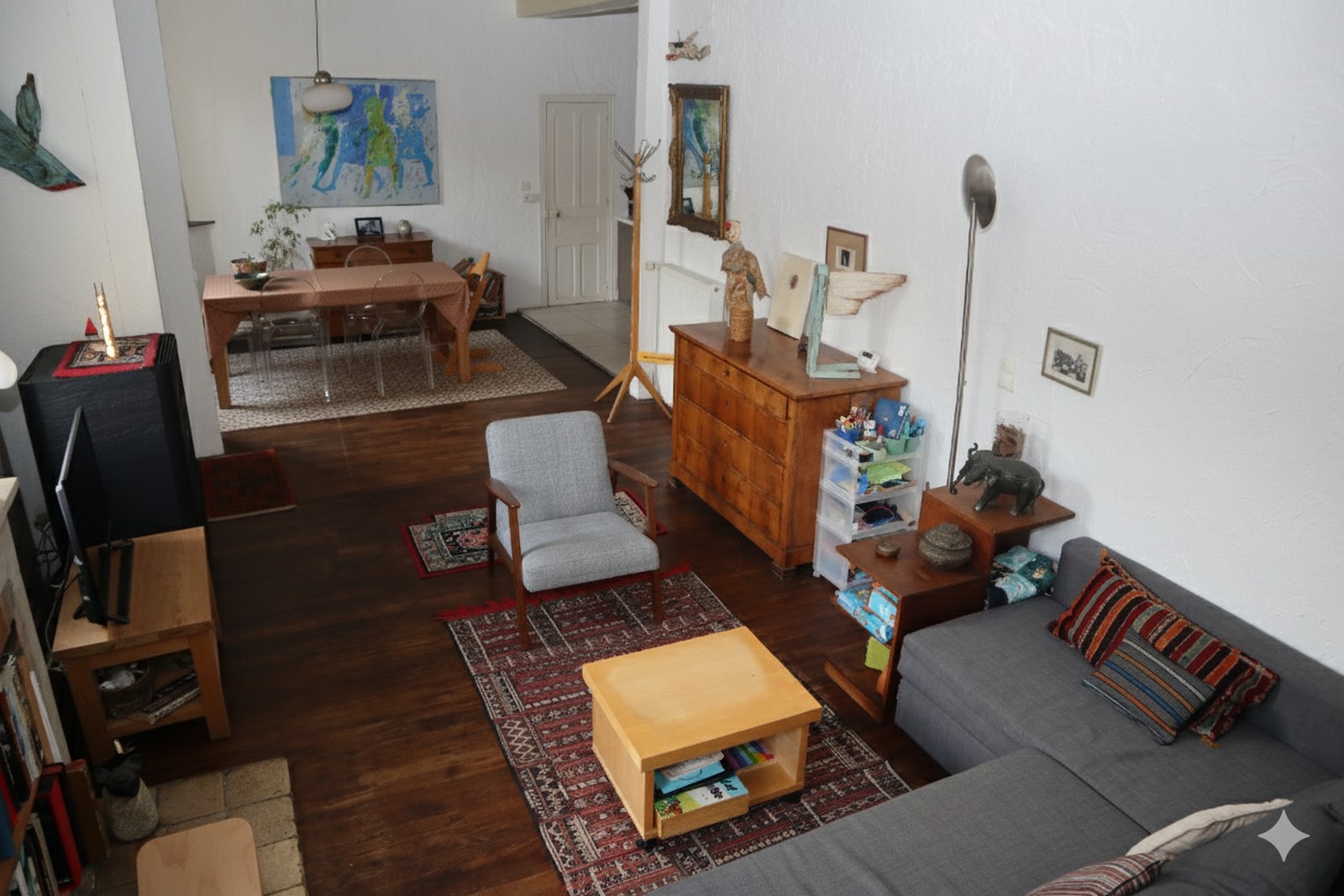 Maison de ville comprenant : Salle de séjour 40 m² parquetée avec cheminée, poêle à granulés et escalier apparent. Cuisine ouverte équipée 18 m² carrelée donnant sur véranda 18 m² carrelée. Chambre 14 m² parquetée avec cheminée et salle de bains privative 9 m² carrelée avec wc. Buanderie 8 m² carrelée.