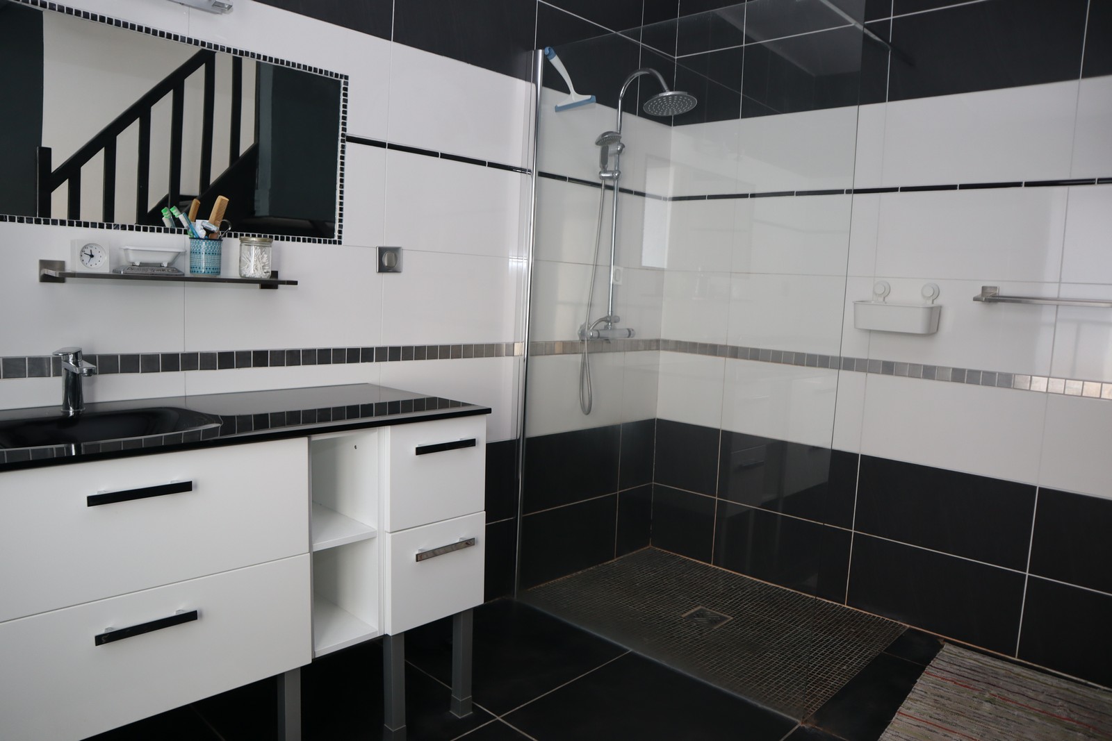 Étage : Chambre 18 m² parquetée en mezzanine. Chambre 13 m² parquetée. Bureau 13 m² parqueté avec mezzanine. Dressing 3 m² parqueté. Salle d'eau 10 m² carrelée. wc carrelé avec lavabo.