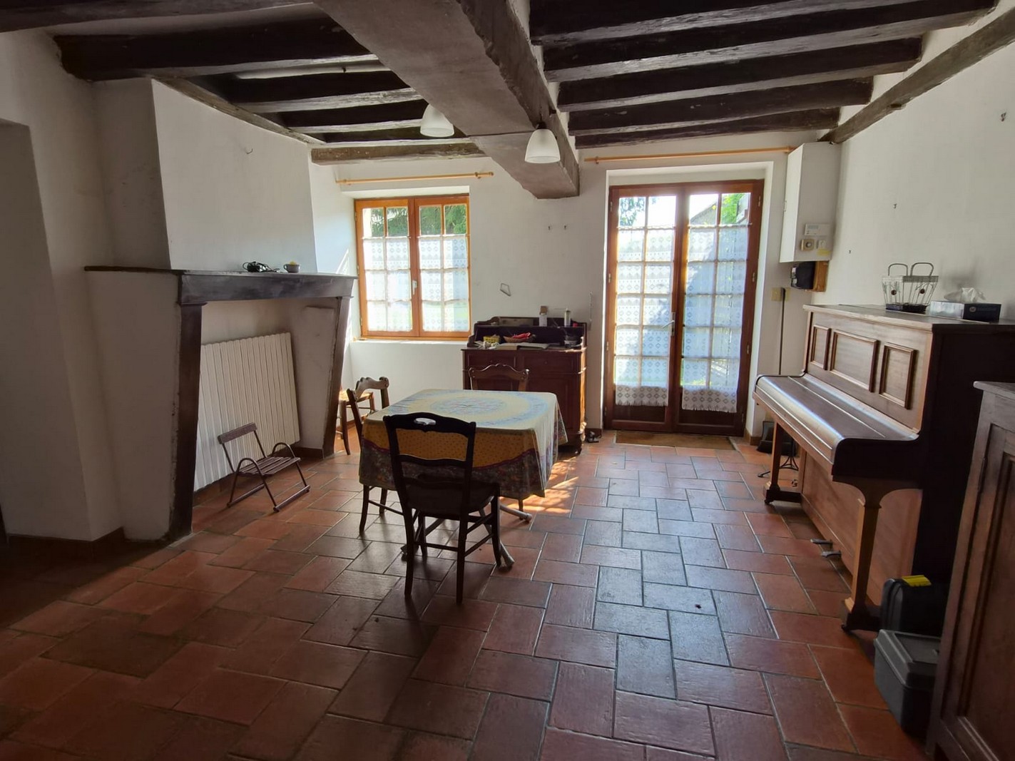 Fermette comprenant : Entrée 6 m² carrelée. Cuisine 10 m² carrelée. Salle à manger 20 m² carrelée. Chambre 22 m² carrelée. Chambre 19 m² carrelée. Salon 25 m² carrelé avec cheminée. Salle d’eau 5 m² carrelée. wc carrelé.