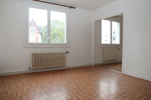 Appartement au 1er étage comprenant : Entrée 7 m² sol vinyle avec placard. Salle de séjour 26 m² sol vinyle avec porte-fenêtre donnant sur balcon. Cuisine 8 m² carrelée. Arrière-cuisine 2 m² sol vinyle. Chambre 9 m² sol vinyle avec placard. Chambre 9 m² sol vinyle avec placard. Salle d’eau 4 m² sol vinyle. wc sol vinyle.