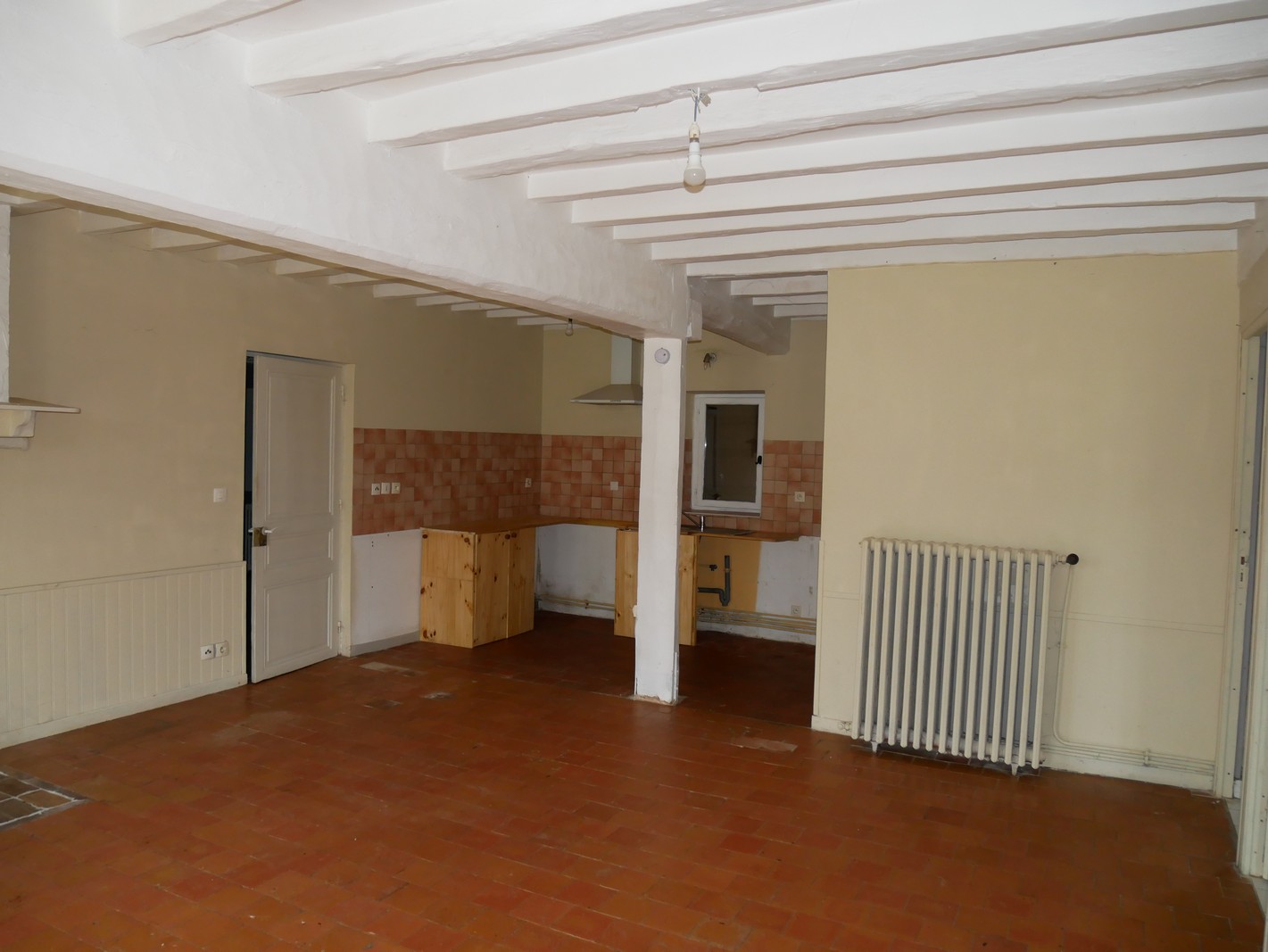 Maison comprenant: Salle de séjour 27 m² sol tomettes. Cuisine ouverte 7 m² sol tomettes. Salle d’eau 4 m² carrelée avec wc. Chambre 17 m² carrelée. Chambre 13 m² carrelée. Chambre 11 m² carrelée.